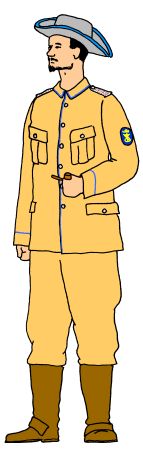 naval gunner wears the Schutztruppe M1896 khaki uniform (see below) with blue Schutztruppe